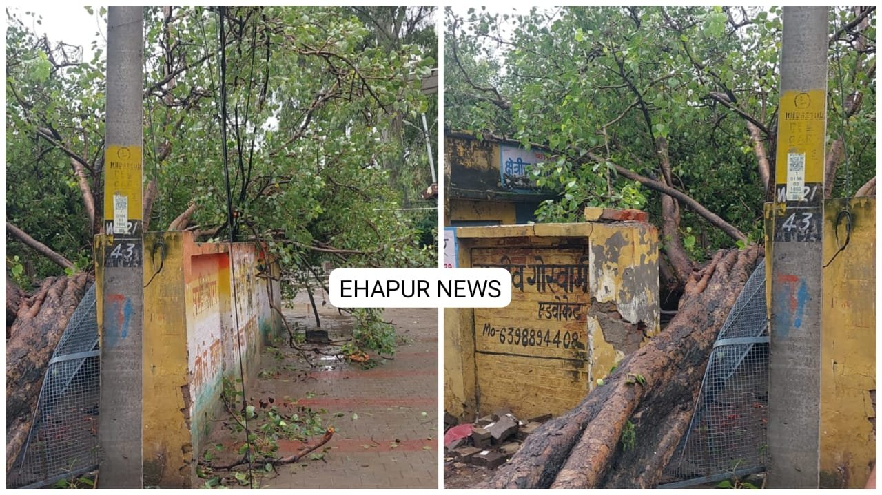 हापुड़, सीमन (ehapurnews.com): हापुड़ नगर पालिका परिषद के परिसर में स्थित राशन कार्ड के ऑफिस की दीवार पर एक पेड़ गिर गया। गनीमत रही कि किसी को चोट नहीं आई। पेड़ गिरने से लोगों को थोड़ी परेशानी का सामना करना पड़ रहा है जिन्होंने मामले में संबंधित विभाग का ध्यान इस ओर खींचा है।