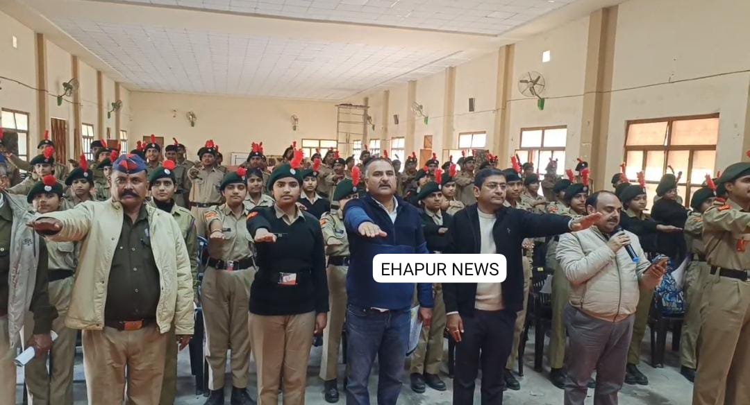 हापुड़, सीमन/ संजय कश्यप (ehapurnews.com): हापुड़ की दिल्ली रोड पर स्थित एसएसवी इंटर कॉलेज में सड़क सुरक्षा माह को लेकर जागरूकता कार्यक्रम का आयोजन किया गया। इसमें एनसीसी के छात्रों को जागरुक किया गया। इस दौरान सभी ने नियमों का पालन करने की शपथ ली। एआरटीओ रमेश कुमार चौबे, पीटीओ आशुतोष उपाध्याय टीम के साथ एसएसवी इंटर कॉलेज पहुंचे जहां सभी को सड़क सुरक्षा माह के बारे में जागरूक किया। इस दौरान बच्चों को सम्मानित भी किया।