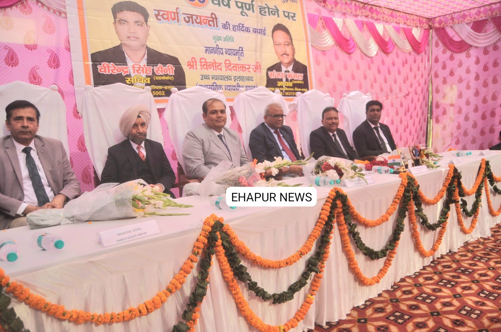 हापुड़, सीमन (ehapurnews.com): हापुड़ बार एसोसिएशन द्वारा हापुड़ में न्यायालय स्थापना के 50 वर्ष पूर्ण होने के उपलक्ष्य में स्वर्ण जयंती समारोह का भव्य आयोजन कचहरी प्रांगण में किया गया। समारोह की अध्यक्षता हापुड़ बार एसोसिएशन के अध्यक्ष संजय कंसल एडवोकेट ने की तथा संचालन बार सचिव वीरेंद्र सैनी द्वारा किया गया।