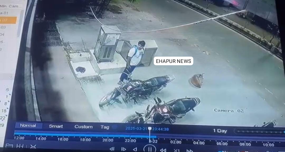 हापुड़, सीमन (ehapurnews.com): जनपद हापुड़ के थाना हापुड़ कोतवाली क्षेत्र की फ्रीगंज रोड पर स्थित अस्पताल के बाहर खड़ी एक बाइक को चोर ने अपना निशाना बनाया। बीती रात चोर बाइक को चुराकर फरार हो गए जिसका सीसीटीवी सामने आया है जिसमें एक संदिग्ध दिखाई दे रहा है।