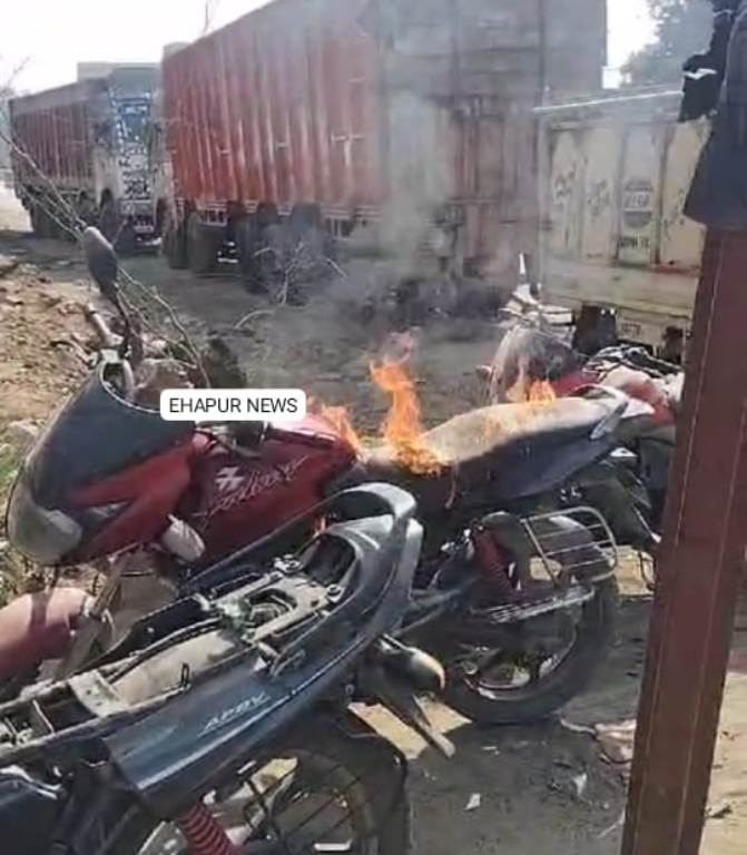 हापुड़, सीमन (ehapurnews.com): जनपद हापुड़ के थाना हापुड़ कोतवाली क्षेत्र की बुलंदशहर रोड पर स्थित मदरसे के सामने एक दुकान पर एक व्यक्ति ने पल्सर बाइक में आग लगा दी। आग लगाते हुए की वीडियो सोशल मीडिया पर वायरल हो रही है। इस दौरान दोनों पक्षो में कहासुनी भी हुई।