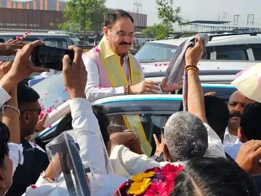 हापुड़ः भाजपा केंद्रीय मंत्री जेपी नड्डा का छिजारसी टोल पर स्वागत