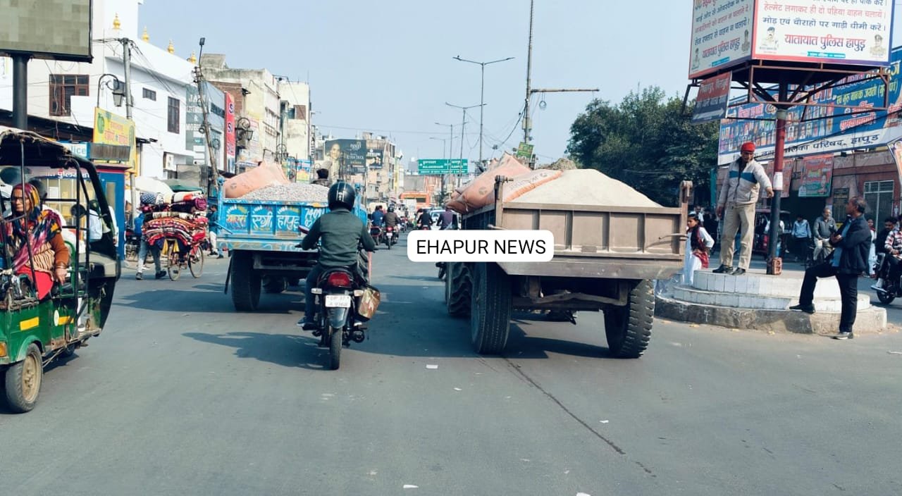 हापुड़, सीमन (ehapurnews.com): हापुड़ में बढ़ते प्रदूषण की वजह से कई कदम उठाए गए हैं। ग्रेप-चार भी लागू किया गया है लेकिन इसके बावजूद भी पुलिस कर्मियों के सामने ट्रैक्टर ट्राली में खुले में निर्माण सामग्री ले जाई जा रही है जिससे कई सवाल खड़े हो रहे हैं। ग्रेप 4 में निर्माण कार्यों पर भी रोक लगी है।