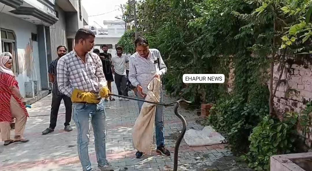 हापुड़, सीमन (ehapurnews.com): हापुड़ की मेरठ रोड पर स्थित आवास विकास कॉलोनी संजय विहार कॉलोनी स्थित एक मकान में शुक्रवार की सुबह कोबरा सांप निकल आया जिसे देखकर सभी के होश उड़ गए। सूचना पर हापुड़ के फॉरेस्ट रेंजर मुकेश चंद्र कांड़पाल ने टीम का गठन किया। इसके पश्चात वन विभाग की टीम मौके पर पहुंची और कड़ी मशक्कत के पश्चात कोबरा सांप को पकड़कर उसका सुरक्षित रेस्क्यू किया जिसके बाद सभी ने राहत की सांस ली।