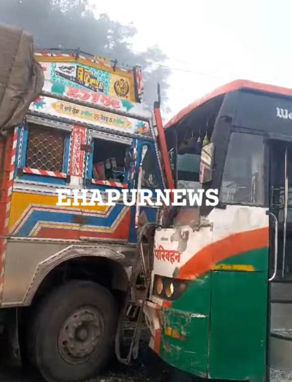 हापुड़: रोडवेज बस व ट्रक की आमने-सामने की भिड़ंत