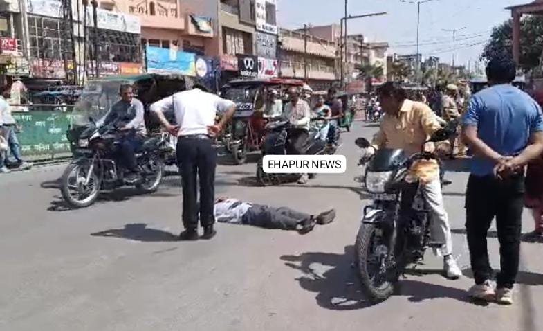 मामला सोमवार का है जब हापुड़ के अतरपुरा चौराहा पर वाहन गुजर रहे थे। तभी एक व्यक्ति अचानक चौराहा पर पहुंचा और सड़क पर लेट गया। इसी बीच वाहनों की रफ्तार थम गई। सूचना पर पुलिस तथा यातायात पुलिस मौके पर पहुंची। सिपाही मनोज कुमार ने लोगों की सहयोग से व्यक्ति को उठाया और उसे साइड बैठाया। इसके बाद यातायात सुचारू हुआ।