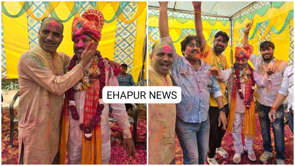 हापुड़, सीमन (ehapurnews.com): हापुड़ सदर विधायक विजयपाल आढ़ती ने क्षेत्र वासियों के साथ बढ़-चढ़कर होली का पर्व मनाया। इस अवसर पर सभी ने परस्पर एक दूसरे को गुलाल लगाकर ढोल पर डांस कर होली खेली। आए हुए मेहमानों का विधायक सदर हापुड़ विजयपाल आढ़ती ने गुलाल और फूलों के साथ जोरदार स्वागत किया। विधायक ने कहा कि होली का पर्व खुशियों व रंगों का त्यौहार है। इस अवसर पर सभी ने एक दूसरे को खुशियां बाँटी।