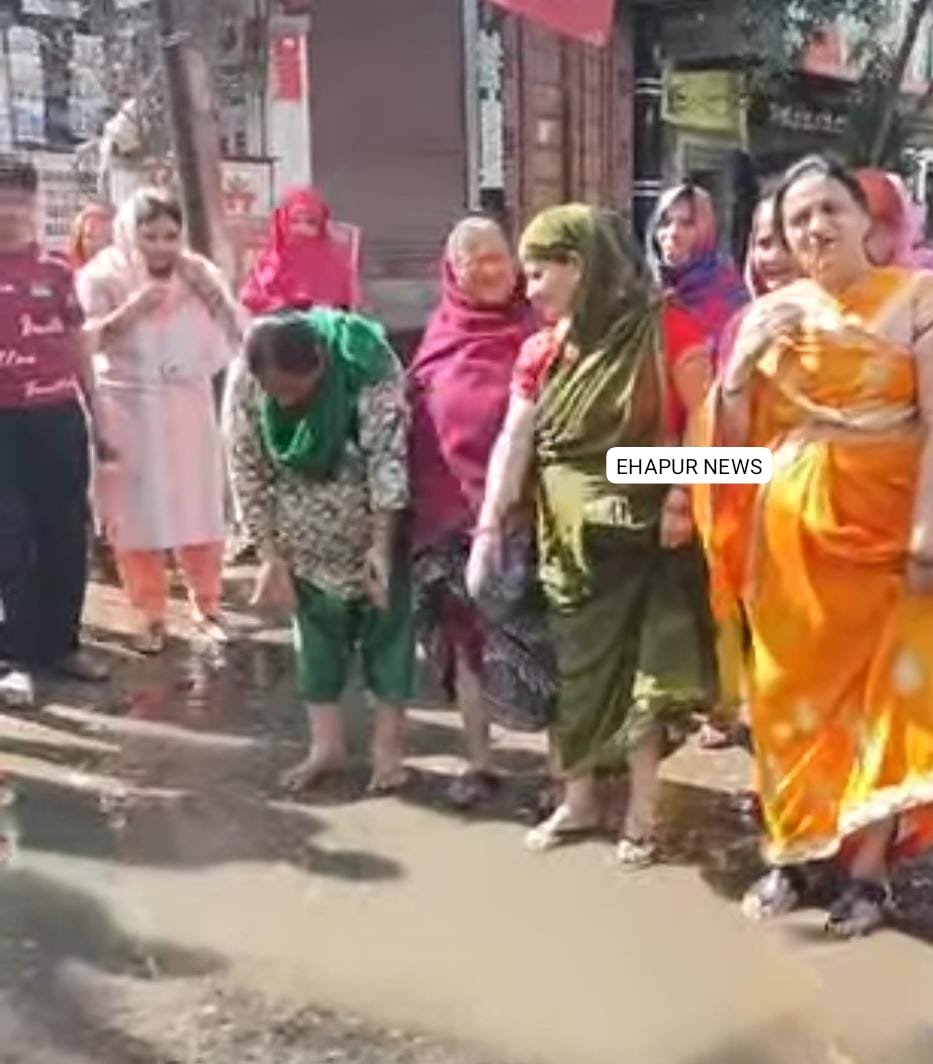 हापुड़, सीमन (ehapurnews.com): हापुड़ की मीनाक्षी रोड पर स्थित अयोध्यापुरी के आसपास पानी भरा होने की वजह से क्षेत्रवासी बेहद नाराज हैं जिन्होंने सड़क पर उतर कर जलभराव के खिलाफ प्रदर्शन किया और जल्द से जल्द समस्या से छुटकारा दिलाने की मांग की। सड़क पर उतरी महिलाओं ने कहा कि पानी भरने की वजह से लोगों को परेशानी हो रही है। हालात यह हैं कि यहां लोग गिर कर चोटिल हो रहे हैं और मजबूरन उन्हें बीमारियों के बीच रहना पड़ रहा है। क्षेत्र वासियों ने मामले में जल्द से जल्द जल निकासी की मांग की है।