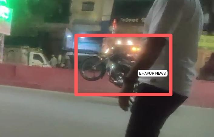 हापुड़, सीमन (ehapurnews.com): हापुड़ में बाइक सवार ने बीती रात तहसील चौराहे के पास स्टंट बाजी की जिसकी लोगों ने वीडियो बनाकर सोशल मीडिया पर वायरल कर दी। हापुड़ के अटल गौरव पार्क और तहसील चौराहे के बीच की यह वीडियो है जिसमें एक बाइक सवार ने बाइक आगे से उठाकर स्टंट बाजी की। इस दौरान जाम की स्थिति भी पैदा हो गई। आसपास मौजूद लोगों ने इस तरह की स्टंटबाजी पर लगाम लगाने की मांग की है।