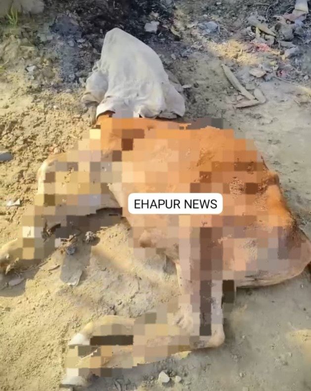 हापुड़: राष्ट्रीय गौ सेवा संघ ने मृत गोवंश को गड्ढा खुदवा कर दबाया