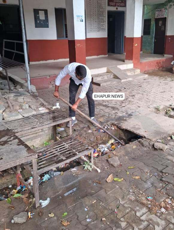 हापुड़: तहसील कंपाउंड में जबरदस्त बदबू, अधिवक्ता ने की नाली की सफाई
