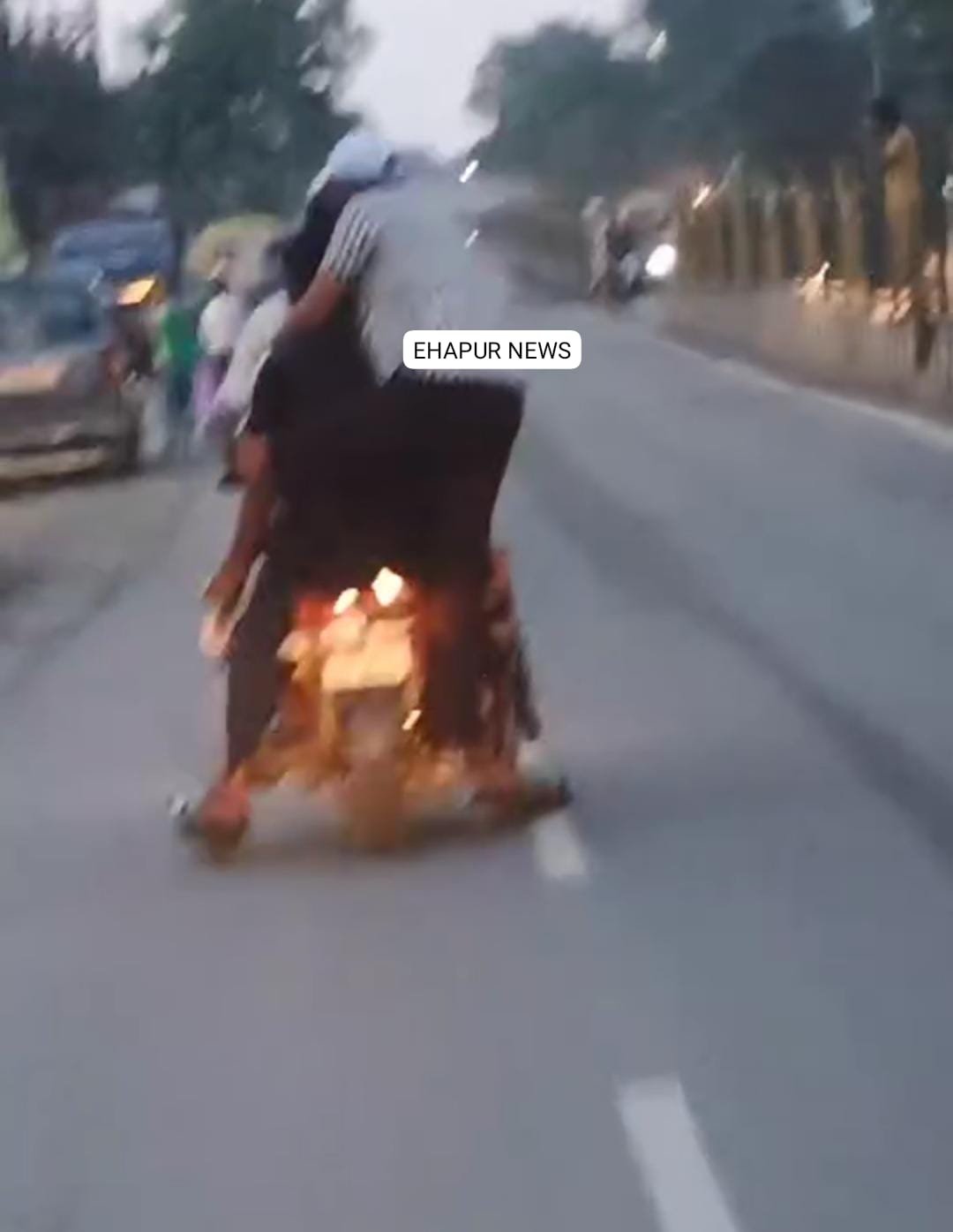 हापुड़, सीमन (ehapurnews.com): हापुड़ की बुलंदशहर रोड पर बाइक सवार द्वारा स्टंटबाजी का वीडियो सोशल मीडिया पर वायरल हो रहा है। बाइक पर तय संख्या से अधिक लोग यात्रा कर रहे हैं और अपने साथ-साथ औरों की जान को भी जोखिम में डाल रहे हैं। बाइक पर लटक कर युवक जाता हुआ दिखाई दिया जिससे कई सवाल खड़े हो रहे हैं। लोगों ने मामले में स्टंटबाजों पर कार्रवाई की मांग की है।