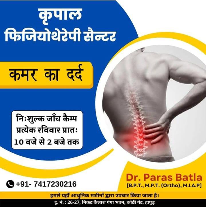 घुटनों के दर्द, स्लिप डिस्क से परेशान तो आधुनिक मशीनों द्वारा कराएं फिजियोथैरेपी: 7417230216