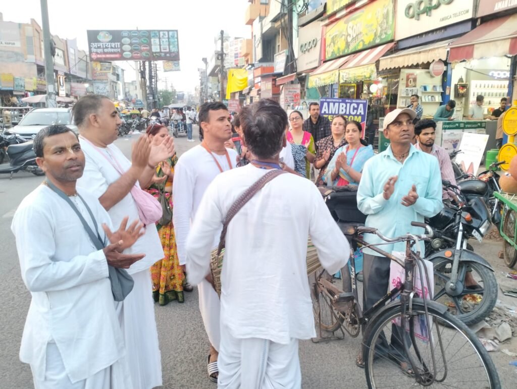 हापुड़, सीमन (ehapurnews.com): अंतर्राष्ट्रीय कृष्णभावनामृत संघ इस्कॉन द्वारा विश्व शांति के लिए (एक राष्ट्रव्यापी आह्वान) के अंतर्गत इस्कॉन हापुड़ द्वारा नगर में रविवार को सायं 6:00 से हरी नाम संकीर्तन किया गया। नगर हरिनाम संकीर्तन देवी मंदिर फ़्री गंज रोड से प्रारंभ होकर नगर के विभिन्न मार्गों से होता हुआ जैना टॉकीज रेलवे रोड पर संपन्न हुआ जिसमें इस्कॉन के सभी भक्तों के द्वारा भव्य हरिराम संकीर्तन किया गया। इस अवसर पर श्रद्धालुओं ने बढ़-चढ़कर हिस्सा लिया और अपनी आस्था का परिचय दिया।