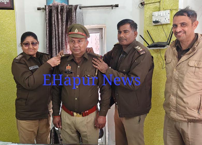 हापुड,सीमन/रियाज अहमद(ehapurnews.com):कोतवाली पिलखुआ के हैड कांस्टेबल नवनीत कुमार 30 साल की सेवा के उपरांत उन्हें उप निरीक्षक के पद पर प्रोन्नत किया गया है।सीओ अनीता चौहान ने स्टार लगा कर शुभकामनाए दीं।नवनीत कुमार सन् 1995 में पुलिस सेवा में कांस्टेबल के पद पर चयनित हुए थे।मूल रूप से वह बागपत के दानिश पुर के निवासी है।स्वच्छ छवि और कार्य के प्रति निष्ठा को देखते हुए उन्हे 2018 में हैड कांस्टेबल पद पर प्रोन्नत किया गया और उपनिरीक्षक पद पर।उनकी इस उन्नति पर उन्हे बधाई मिल रही है।