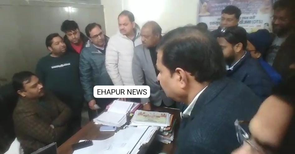 हापुड़, सीमन/अशोक तोमर (ehapurnews.com): इंडियन इंडस्टरीज एसोसिएशन हापुड़ चैप्टर के पदाधिकारियों व सदस्यों ने शनिवार को हापुड़ नगर पालिका परिषद के परिसर में स्थित विद्युत विभाग के एक्सएन कार्यालय का घेराव किया और बिजली विभाग के अधिकारियों को जीभर कर कोसा। उन्होंने अधिकारियों की कार्यशैली पर कई प्रश्न चिन्ह खड़े किए और जमकर हंगामा किया। उद्यमियों ने अधिकारियों पर गंभीर आरोप लगाए और जबरदस्त नारेबाजी भी की। गुस्साए उद्यमियों, व्यापारियों ने एक स्वर में कहा कि लापरवाह अधिकारी खुलेआम रिश्वत मांगते हैं। मरम्मत के नाम पर, कनेक्शन देने के नाम पर सुविधा शुल्क वसूला जा रहा है। मामले में शीर्ष अधिकारियों को जांच कमेटी बैठानी चाहिए। जांच के पश्चात लापरवाहों के खिलाफ कार्रवाई हो और अधिकारियों की संपत्ति की भी जांच हो।