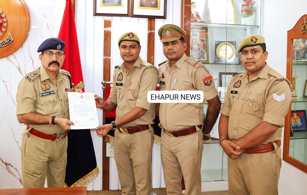 हापुड़, सीमन (ehapurnews.com): उत्तर प्रदेश शासन द्वारा माह सितम्बर 2025 में IGRS सन्दर्भों के निस्तारण की समीक्षा कर राज्य स्तर पर जनपद की रैंकिगं निर्धारित की गई है, जिसके अनुसार IGRS शाखा प्रभारी निरीक्षक श्यौपाल सिंह, मुख्य आरक्षी नितिन कुमार व मुख्य आरक्षी नवीन त्यागी द्वारा IGRS पोर्टल के माध्यम से प्राप्त शिकायती प्रार्थना पत्रों का निस्तारण कराये जाने में अथक प्रयास कर पूर्ण मनोयोग से कार्य किया गया, जिसके फलस्वरूप IGRS के निस्तारण में जनपद हापुड का प्रदेश स्तर में प्रथम स्थान रहा, जिसके परिणामस्वरूप पुलिस अधीक्षक महोदय द्वारा निरीक्षक श्यौपाल सिंह, मुख्य आरक्षी नितिन कुमार व मुख्य आरक्षी नवीन त्यागी को उत्साहवर्धन हेतु प्रशस्ति-पत्र प्रदान कर सम्मानित किया गया।