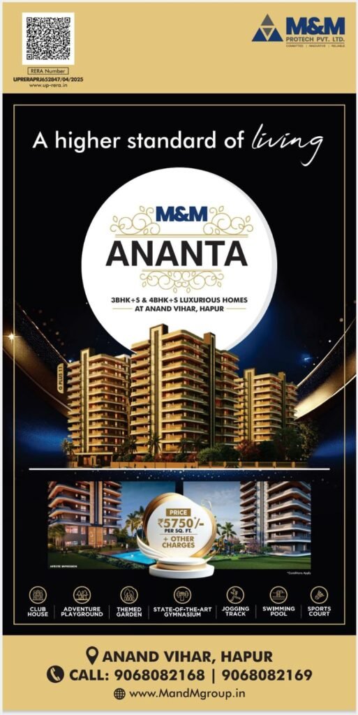 M&M ANANTA: 3BHK + 4BHK + LUXURIOUS HOMES AT ANAND VIHAR, HAPUR: 9068082168, 9068082169