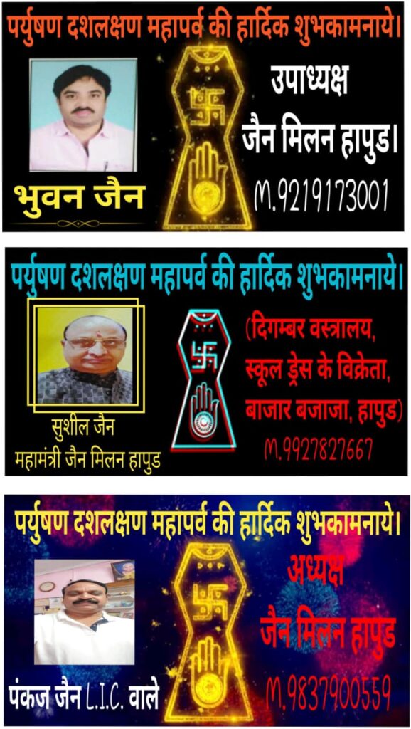 हापुड, सीमन/सुरेश जैन(Ehapurnews.com): जैन धर्म के पर्युषण दशलक्षण महापर्व मे श्री 1008 आदिनाथ दिगम्बर जैन मंदिर कसेरठ बाजार पर बुधवार प्रातःकाल जैन समाज के अध्यक्ष अनिल जैन , महामंत्री अशोक जैन, राजीव जैन आलू वाले,मनोज जैन, हिमांशु जैन द्वारा शान्तिधारा कि गयी।रोहित जैन शास्त्री ने विधान पाठ की पूजा कराई। दशलक्षण महापर्व मे प्रतिदिन धर्म के एक लक्षण पर चर्चा के क्रम मे आज के धर्म उत्तम तप धर्म पर चर्चा की गई। जैन विद्धान रोहित जैन शास्त्री ने कहा कि तप मनुष्य की आत्मा को शुद्ध व पवित्र बनाता है जिसतरह सोने को अग्नि से शुद्ध किया जाता है उसीतरह से तप की अग्नि मानव को शुद्ध बना देती है तप 12 प्रकार का होता है। जीवन मे आने वाले दुखो का सामना करना भी तप है मुसीबत मे हमारा आत्मबल कमजोर न हो यह भी तप है। राजीव जैन, सुरेश चन्द जैन, आर के जैन एडवोकेट, बीनू जैन एडवोकेट, विकास जैन, तुषार जैन, सुखमाल जैन, सुशील जैन, रेणुका जैन, सरोज जैन, ममता जैन, सुषमा जैन, सरोज जैन, बबीता जैन आदि उपस्थित हुए।