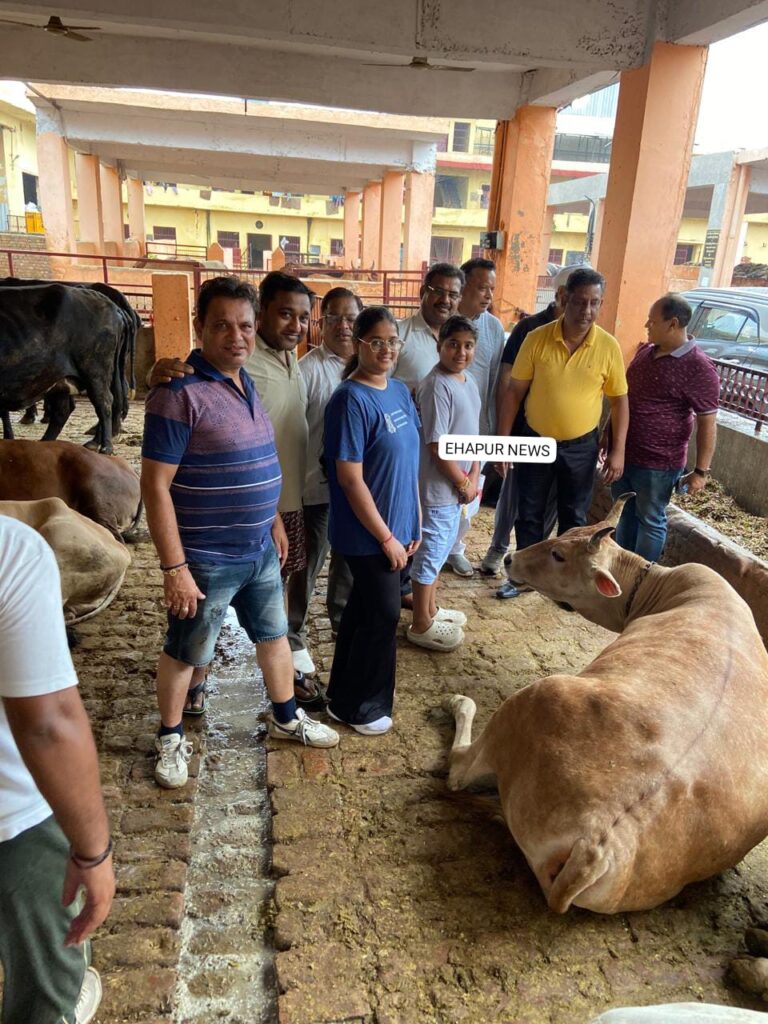 हापुड़, सीमन (ehapurnews.com): लायंस क्लब क्रांति उदय द्वारा रविवार को हापुड़ की गढ़ रोड पर स्थित पंचायती गौशाला में गौ माता की सेवा की गई। गौ माता को चारा, रोटी खिलाया और गैय्या का आशीर्वाद लिया। क्लब के प्रेसिडेंट लायन शरद गर्ग, सेक्रेटरी लायन दीपक गर्ग, ट्रेजरार लायन अंकुर गोयल ने बताया कि क्लब के पदाधिकारी और सदस्य पंचायती गौशाला में एकत्र हुए जहां उन्होंने गैय्या की सेवा की और गौ माता का आशीर्वाद लिया। इस अवसर पर प्रसाद भी वितरित किया गया।