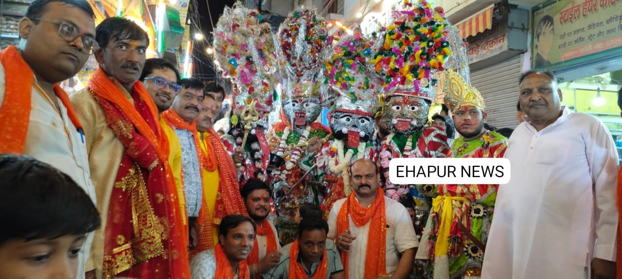 हापुड़, सीमन (ehapurnews.com): श्री संतोषी माता मंदिर समिति जैन गली हापुड़ के तत्वाधान में गुरुवार को मां संतोषी का पंखा बड़े ही हर्षोल्लास के साथ निकला गया। शोभायात्रा में हाथरस की मां काली की भव्य शोभा यात्रा, अघोरी नृत्य, मां दुर्गा की आरती, राम रावण युद्ध, आदि योगी की झांकियां के साथ हापुड़ के मशहूर बैंड माता संतोषी का गुणगान कर रहे थे। शोभायात्रा में महारानी मां संतोषी जिस रथ पर विराजमान थी उसकी छटा देखते ही बन रही थी भक्तों ने जगह जगह शोभायात्रा पर पुष्पवर्षा की। शोभायात्रा में प्रसाद वितरण किया गया श्रद्धालुओं ने बढ़ चढ़ कर मां का प्रसाद ग्रहण किया।