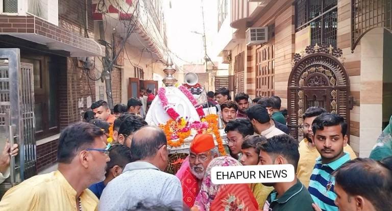 हापुड़, सीमन (ehapurnews.com): मां आद्यशक्ति श्री चंडी जी पालकी सेवा समिति हापुड़ की अगुवाई में मां चंडी जी पालकी शोभा 22 सितम्बर से एक अक्टूबर तक प्रतिदिन भोर में हापुड़ नगर के विभिन्न मौहल्लों का भ्रमण करेगी। समिति ने शोभा यात्रा का कलैंडर जारी कर दिया है। मां चंडी जी पालकी जिस भी द्वार के आगे से गुजरती है, भक्तजन फल, फूल, मिठाई, चुनरी तथा श्रृंगार सामग्री से मां चंडी के स्वरुप की पूजा अर्चना कर मां का आशीर्वाद प्राप्त करते है।