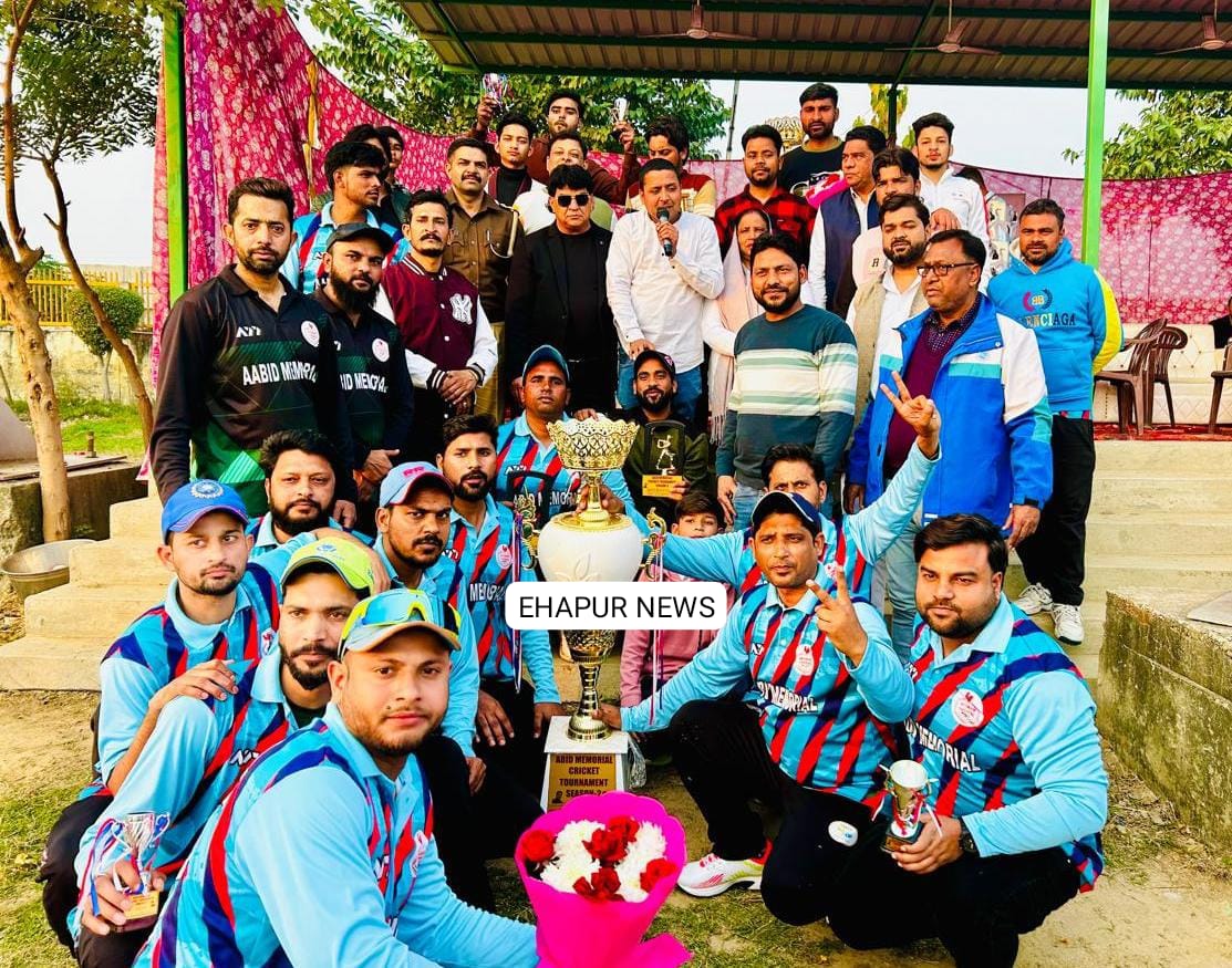 हापुड़, सीमन (ehapurnews.com): आबिद मेमोरियल क्रिकेट टूर्नामेंट सेशन-2 का फाईनल मैच का आयोजन जेएमएस वर्ल्ड स्कूल ग्राउंड में किया गया जिसका उद्घाटन व समापन नगर पालिका परिषद हापुड़ की अध्यक्ष पुष्पा देवी व समाजसेवी राजा सैफी, हाजी शाहिद व सोसायटी के चेयरमैन मौ दानिश कुरेशी ने किया।