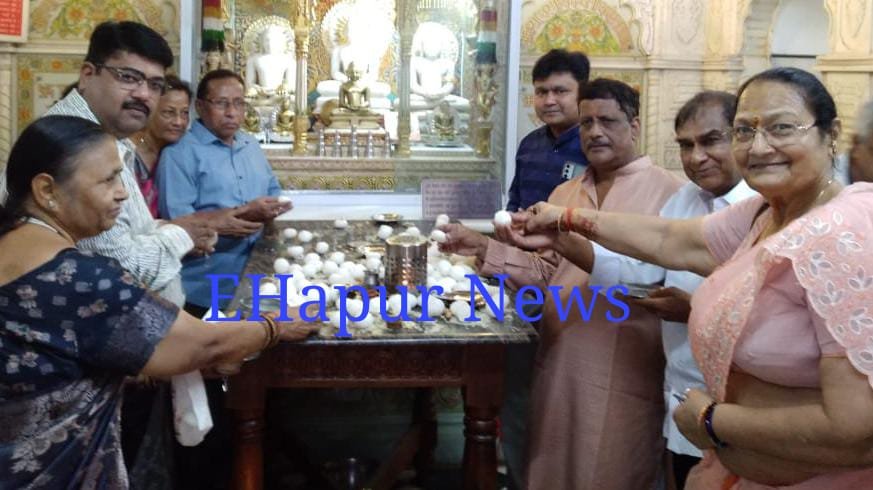 हापुड, सीमन/सुरेश जैन (Ehapurnews.com): जैन धर्म के 24 वे तीर्थकर भगवान महावीर स्वामी के मोक्ष कल्याणक दिवस पर नगर के तीनों दिगम्बर जैन मंदिरो मे जैन भक्तो ने श्रद्धांपूर्वक निर्वाण लाडडू चढाकर पूजा अर्चना की।