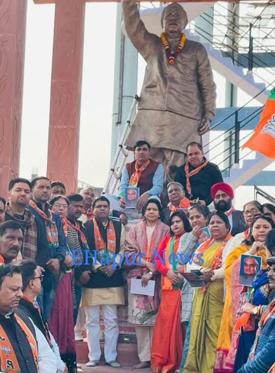 हापुड़, सीमन/अशोक तोमर (ehapurnews.com): देश के भूतपूर्व प्रधानमंत्री व भारत रत्न स्व.अटल बिहारी वाजपेयी का जन्मदिन बुधवार को हापुड़ में भाजपाइयों ने सुशासन दिवस के रुप में मनाया और भाजपा नेताओं व कार्यकर्ताओं ने अटल जी की प्रतिमा पर माल्यार्पण कर उन्हें याद किया और अपने-अपने श्रद्धासुमन अर्पित किए। भाजपाइयों ने अटल के आदर्शो को जीवन में उतारने का संकल्प लिया।
