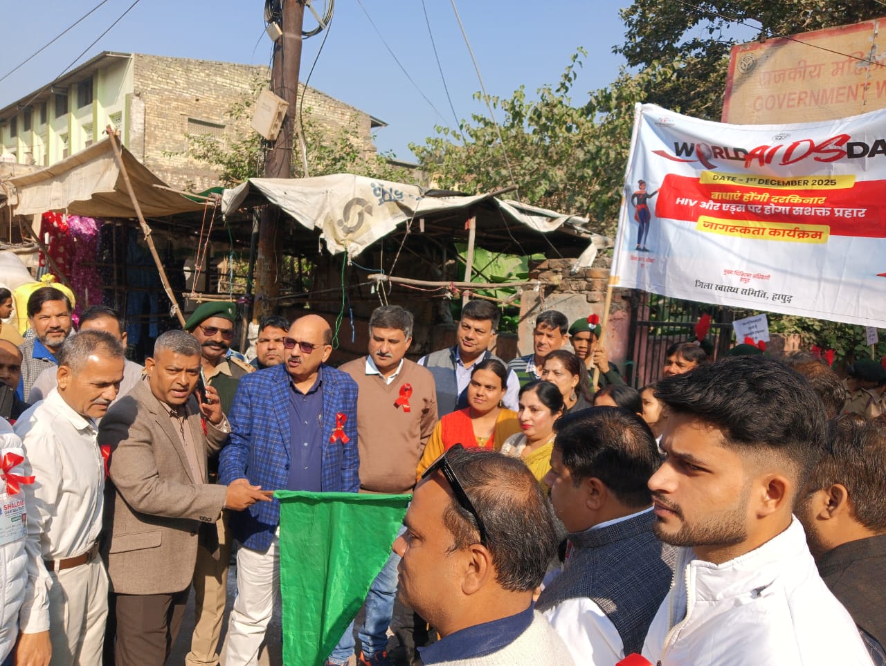 हापुड़,सूवि(ehapurnews.com ):हापुड के जिलाधिकारी अभिषेक पांडेय के कुशल निर्देशन में जनपद में सोमवार को विश्व एड्स दिवस मनाया गया। कार्यक्रम का शुभारंभ मुख्य विकास अधिकारी हिमांशु गौतम एवं मुख्य चिकित्सा अधिकारी डॉक्टर सुनील कुमार त्यागी ने कोठी गेट चिकित्सालय परिसर से हरी झंडी दिखाकर किया गया कार्यक्रम में जनपद के विद्यालयों के एन0सी0सी कैडेट्स ने भाग लिया स्वास्थ्य विभाग की टीमों एवं एस 0एस 0वी 0 इंटर कॉलेज, दिल्ली पब्लिक स्कूल , एस 0एस 0के 0इंटर कॉलेज एवम् सी 0टी 0सी0इण्टर कॉलेज विद्यालयों के एन0सी0सी कैडेटस द्वारा संयुक्त रूप से पी 0पी0 सी कोठी गेट चिकित्सालय परिसर से मैन मार्केट अतरपुरा चोपला होते हुए तहसील चौराहा से वापस चिकित्सालय परिसर में रैली का समापन हुआ। रैली में एनसीसी कैडेट्स द्वारा विभिन्न स्लोगन जैसे जन-जन को जगाना है एड्स को भगाना है आदि का उद्घोष करते हुए एवं स्वास्थ्य विभाग के कर्मचारियों द्वारा पोस्टर और पंपलेट का वितरण करते हुए लोगों को जागरूक किया गया। कार्यक्रम में शालोम चैरिटेबल ट्रस्ट का सहयोग रहा।इस अवसर पर जिला क्षय रोग अधिकारी डॉ राजेश सिंह , चिकित्सा अधीक्षक डॉ राकेश यादव जिला पी 0पी0 एम0 कोऑर्डिनेटर सुशील चौधरी, जिला पी 0एम0 डी0 टी/टी 0बी0 एच 0 आई 0वी0 कॉर्डिनेटर मनोज कुमार गौतम ,एस0एस0वी इंटर कॉलेज के लेफ्टिनेंट डॉ0 कपिल बिशला ,आकाश मालवीय ,दिल्ली पब्लिक स्कूल की वर्षा सैनी ,शालोम चैरिटेबल ट्रस्ट के अध्यक्ष अजीत सिंह, एस 0एस 0के इण्टर कॉलेज के श्री विद्या नर दिश एवम् आई सी 0टी 0सी0स्टाफ व नवभारत समाज कल्याण समिति के प्रतिनिधि उपस्थित रहे।