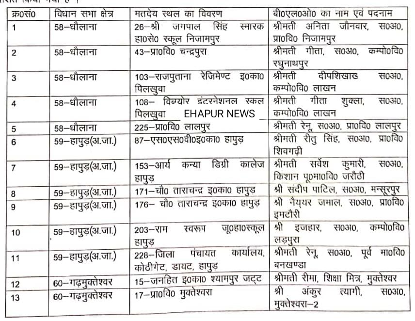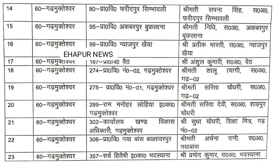 हापुड़, सीमन (ehapurnews.com): हापुड़ जनपद की बेसिक शिक्षा अधिकारी ऋतु तोमर ने शुक्रवार को 23 बीएलओ के खिलाफ वेतन रोकने के आदेश जारी किए हैं। दरअसल सहायक अध्यापक और शिक्षामित्र द्वारा निर्वाचन के गणना प्रपत्र वितरित नहीं किए गए। ऐसे में सभी का अगले आदेशों तक मानदेय रोकने के निर्देश दिए गए हैं।