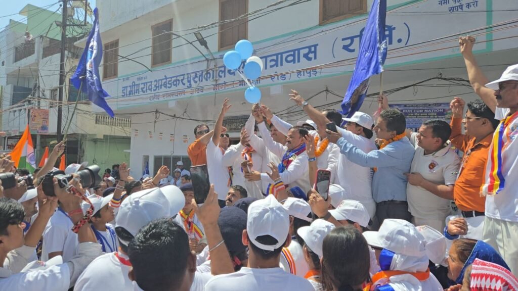 हापुड़, सीमन (ehapurnews.com): अंबेडकर जयंती के उपलक्ष में हापुड़ की मीनाक्षी रोड पर स्थित अंबेडकर पुस्तकालय से एक दौड़ बाबासाहेब के नाम कार्यक्रम का आयोजन किया गया जिसका शुभारंभ विधायक विजयपाल आढ़ती ने किया। हवा में गुब्बारे उड़ाकर कार्यक्रम की शुरुआत की। इस दौरान लोगों ने बढ़-चढ़कर हिस्सा लिया और बाबा साहेब के विचारों पर चलने का संकल्प लिया।