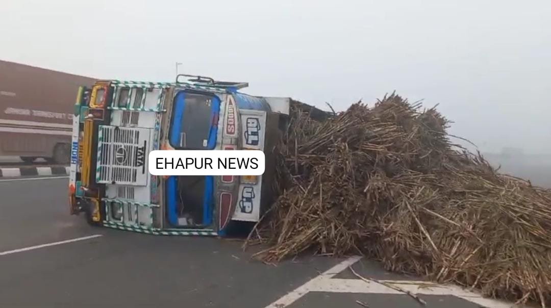 एनएच-9 पर जबरदस्त कोहरा होने की वजह से वाहन चालकों को परेशानी का सामना करना पड़ा। इसी बीच गन्ने से लदा ओवरलोडेड ट्रक जैसे ही चितौली कट के पास पहुंचा तो अचानक चालक ने ट्रक से नियंत्रण खो दिया। इसके बाद गन्ने से लदा ट्रक सड़क पर पलट गया और गन्ना सड़क पर बिखर गया। ऐसे में पुलिस ने क्रेन की सहायता से ट्रक को सीधा कराया।