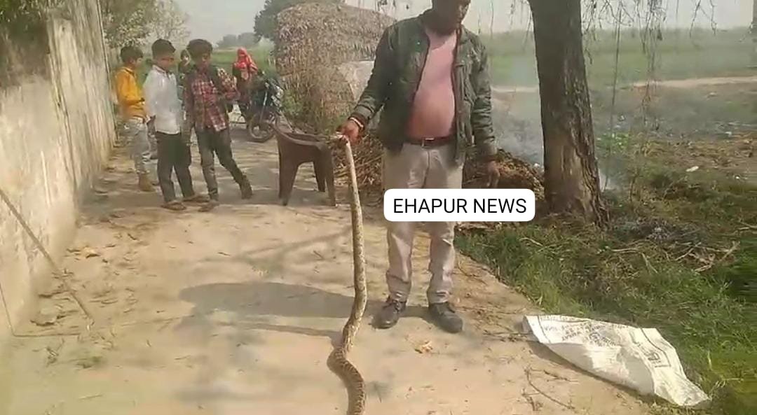 खेतों में आठ फीट लंबा सांप निकलने से हड़कंप