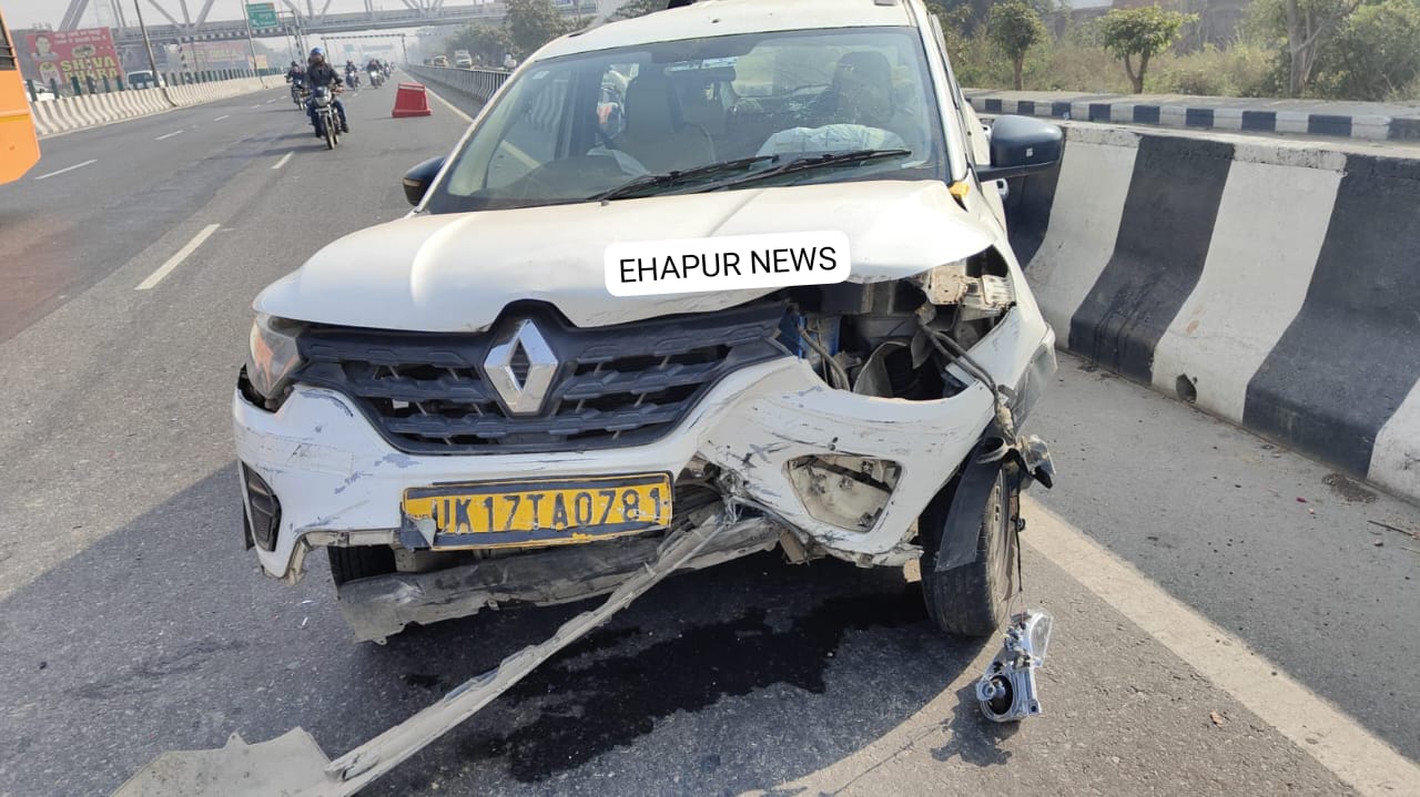 पिलखुवाः सवारी लेकर जा रही कार अनियंत्रित होकर डिवाइडर से टकराई