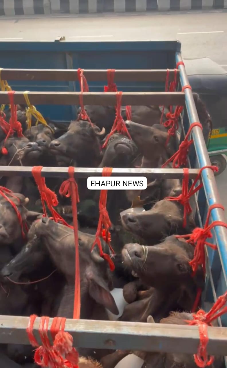 हापुड़, सीमन/ रियाज़ अहमद (ehapurnews.com): जनपद हापुड़ के पिलखुवा के छिजारसी टोल प्लाजा पर हिंदू रक्षा दल से जुड़े कार्यकर्ताओं ने गुरुवार को एक कैंटर में ठूंस-ठूंस कर भरे गए पशुओं को देखा। इसके बाद उन्होंने पुलिस को मामले से अवगत कराया। पुलिस ने बुलोरो पिकअप रुक वाया तो पाया कि कैंटर में करीब 35 पशु ठूंस-ठूंस कर भरे थे। पुलिस ने चालक को हिरासत में लिया।