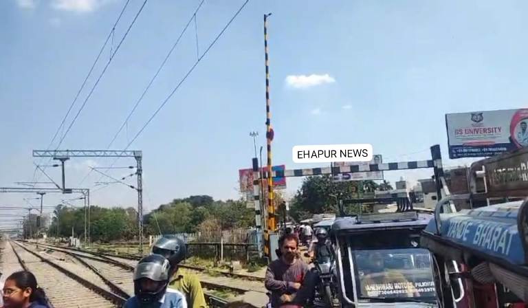 पिलखुवा: रेलवे फाटक पर एक बैरियर खुला व एक बंद होने से राहगीरों में हड़कंप