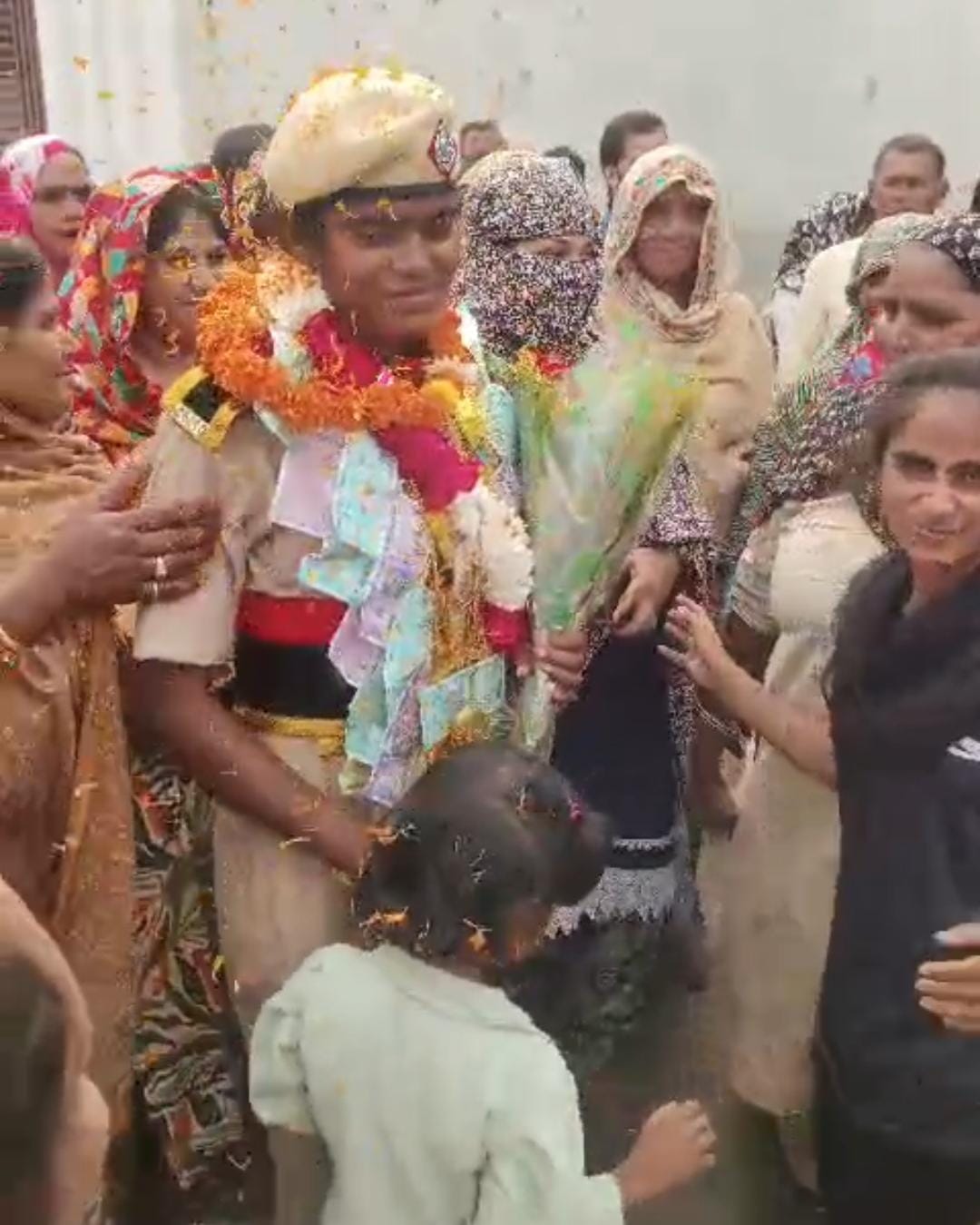 पिलखुवा: वर्दी पहनकर गांव पहुंची बिटिया का पूरे गांव ने किया स्वागत