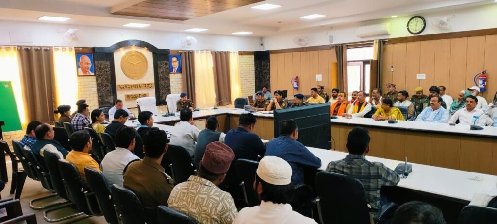 आगामी त्यौहार होली व ईद को सकुशल एवं शान्तिपूर्ण तरीके से सम्पन्न कराने हेतु पुलिस अधीक्षक कुंवर ज्ञानंजय सिंह व अपर जिलाधिकारी संदीप कुमार ने शनिवार को हापुड कलेक्ट्रेट सभागार में धर्मगुरुओं एवं गणमान्य व संभ्रांत व्यक्तियों के साथ पीस कमेटी की एक मीटिंग आयोजित की और उपस्थित जनों से सांप्रदायिक सौहार्द बनाये रखते हुए त्योहारों को आपसी सद्भाव, शान्तिपूर्ण व सौहार्दपूर्ण ढंग से मनाने की अपील की। बैठक में उपस्थित सभी पुलिस-प्रशासनिक अधिकारियों को आवश्यक दिशा निर्देश दिए गए।बैठक में उपस्थित लोगो ने पुलिस व प्रशासन को पूर्ण सहयोग करने का भरोसा दिलाया।
