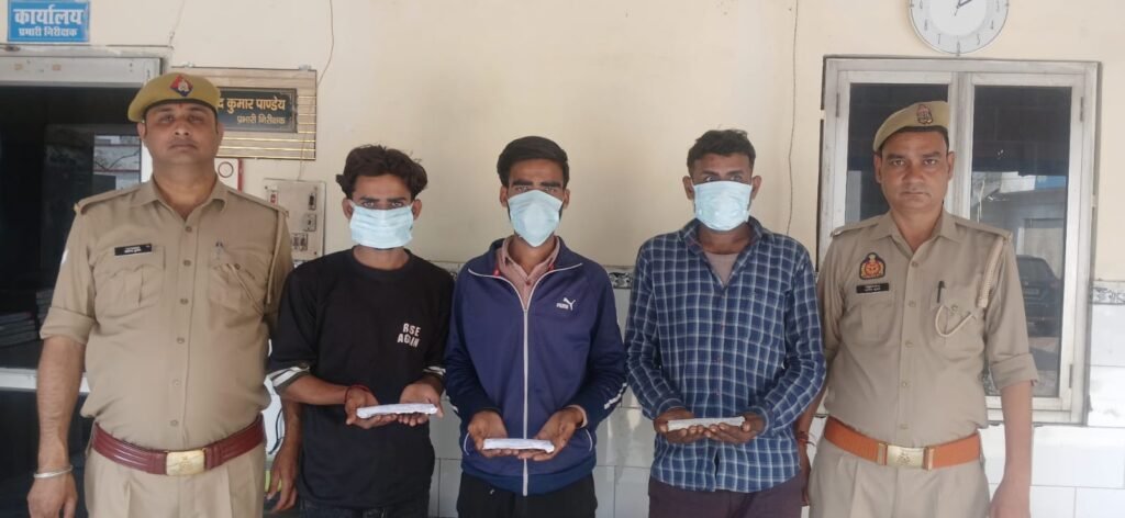 हापुड पुलिस द्वारा जनपद में अपराध की रोकथाम एवं आपराधिक घटनाओं पर अंकुश लगाये जाने हेतु चलाए जा रहे अभियान के अन्तर्गत थाना हापुड़ नगर पुलिस ने चैकिंग के दौरान तीन अभियुक्तों को गिरफ्तार कर लिया जिनके कब्जे से तीन अवैध चाकू बरामद किए है।आरोपी गांव पीर नगर सूदना का सुनील व वाल्मीकि बस्ती सिकन्दर गेट हापुड के प्रियांशु व अंकुश है।पुलिस ने तीनो को जेल दिखा दी है।