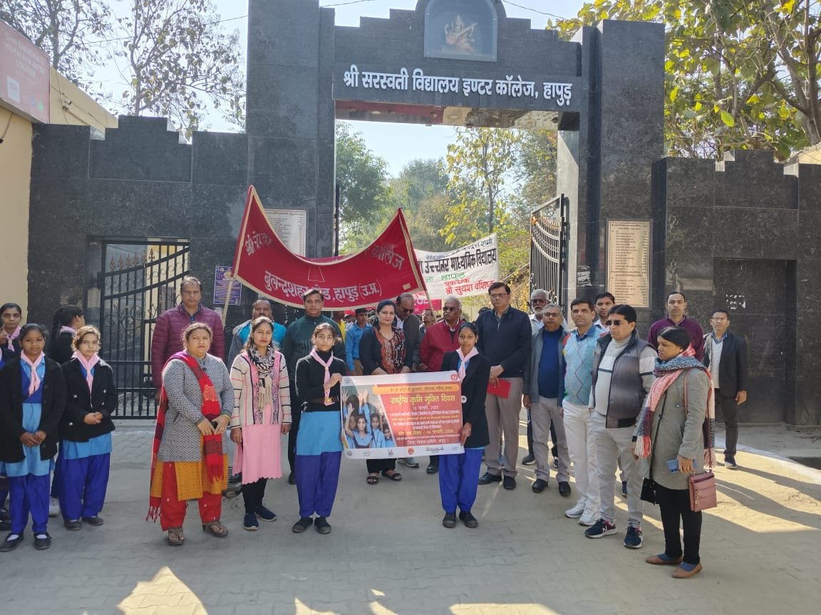 हापुड़ सूवि(ehapurnews.com): नेशनल डिवर्मिंग डे राष्ट्रीय कृमि मुक्ति अभियान के लिए माध्यमिक शिक्षा विभाग एवं स्वास्थ्य विभाग के संयुक्त तत्वावधान में जनपदीय स्तरीय प्रभात फेरी का आयोजन शनिवार की सुबह किया गया। प्रभात फेरी में माध्यमिक शिक्षा के ब्लॉक नोडल अधिकारी प्रधानाचार्य रामस्वरूप उच्चतर माध्यमिक विद्यालय प्रशांत कुमार ने किया। प्रभात फेरी को एस एस वी इंटर कॉलेज के प्रधानाचार्य विजय कुमार गर्ग ,डिप्टी सीएमओ डॉक्टर महेश, स्वास्थ्य शिक्षा के नोडल अधिकारी N.D.D. कार्यक्रम ,डॉ नवीन ने हरी झंडी दिखाकर किया। प्रभात फेरी में हापुड़ के जैन कन्या पाठशाला इंटर कॉलेज, आर्य कन्या पाठशाला इंटर कॉलेज, दीवान इंटर कॉलेज हापुड़ ,S.K.K. इंटर कॉलेज हापुड़, विजेंद्र आदर्श इंटर कॉलेज चमरी, श्री रामस्वरूप उच्चतर माध्यमिक विद्यालय अच्छेजा के विद्यार्थियों ने प्रतिभाग किया।