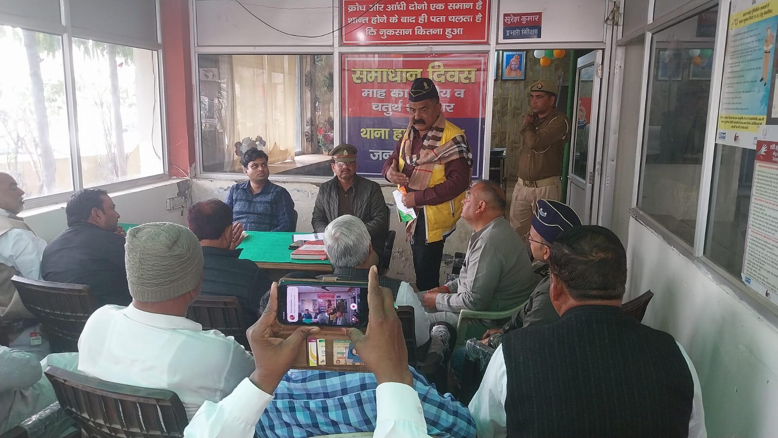 थाना देहात हापुड़ परिसर में उप जिलाधिकारी सदर अंकित वर्मा व थानाध्यक्ष थाना देहात हापुड़ सुरेश कुमार के नेतृत्व में शांति बैठक का आयोजन किया गया जिसमे उपजिला अधिकारी अंकित कुमार वर्मा ने लोगों से आगामी त्यौहारों पर शान्ति बनाए रखने की अपील की तथा लोगों की समस्याएं सुनी। राष्ट्रीय सैनिक संस्था हापुड़ के जिला अध्यक्ष ज्ञानेंद्र त्यागी ने कहा कि क्षेत्र में होने वाली शादी, सगाई आदि समाहरोह में डीजे साऊंड की तेज आवाज पर लगाम लगाई जानी चाहिए और उन्होने आयोजकों के खिलाफ कठोर कार्रवाई करने की मांग की। संस्था के जिला सचिव मुकेश प्रजापति ने साइबर क्राइम जागरूकता कैम्प प्रत्येक गांव में लगाया जाने की मांग की। छात्रों की छुट्टी के समय पुलिस गश्त रोड पर लगाई जानी चाहिए। इस अवसर पर राष्ट्रीय सैनिक संस्था के पूर्व जिला सचिव विजय वर्मा, नगर अध्यक्ष ऋषिपाल प्रजापति,नगर उपाध्यक्ष राजकुमार वर्मा, नगर संगठन मंत्री राकेश प्रजापति, प्रशासनिक सदस्य श्यामवीर सिंह, पूर्व जिला पंचायत सदस्य लल्लू सिंह,पूर्व जिला पंचायत सदस्य व ग्राम श्यामपुर पूर्व प्रधान भगतराम सिंह, नगर पालिका परिषद के सभासद नितिन पाराशर,भाजपा युवा नेता गौरव रूडकीवाल,सेन्सरपाल आदि सामाजिक संस्थाओं के प्रतिनिधि व समाजसेवी मौजूद रहे।