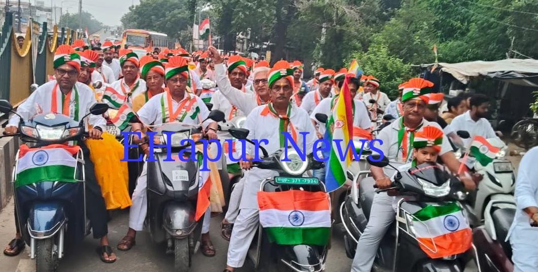 जैन समाज हापुड के तत्वावधान में स्वतन्त्रता दिवस पर निकाली गई अहिंसा तिरंगा यात्रा में चारों ओर सिर पर तिरगी पगड़ी बाधे, वाहनो पर तिरंगे झंडे लगाये देशभक्ति का जज्बा दिखाई दिया।
