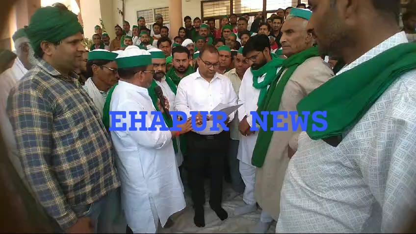 भारतीय किसान यूनियन टिकैत के जिलाध्यक्ष दिनेश खेड़ा, युवा विंग के जिलाध्यक्ष ज्ञानेश्वर त्यागी व महिला मोर्चा की जिलाध्यक्ष नीलम देवी, आदि किसानों ने मांग के समर्थन में एक ज्ञापन अपर जिलाधिकारी संदीप कुमार को दिया।