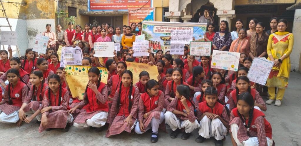 हापुड़, सीमन (ehapurnews.com): तगासराय स्थित रामनिवास स्मारक बालिका इन्टर कालिज, हापुड़ में प्रधानाचार्या सिम्पी वर्मा द्वारा छात्राओं के प्रवेशोत्सव के तहत छात्राओं का पारम्परिक तरीके से तिलक लगाकर, टॉफी तथा मिठाई खिलाकर स्वागत किया गया तथा स्कूल चलो अभियान के तहत स्लोगन, बैनर एवं बैड़ के बच्चों द्वारा रैली निकाली गयी। प्रधानाचार्या | द्वारा हरी झंडी दिखाकर रैली को रवाना किया गया तथा अधिक से अधिक ड्रापआउट ( स्कूल छोडने वाली) छात्राओं के अभिभावकों और समुदाय को शिक्षा के महत्व के प्रति जागरुक करना एवं बच्चों को नियमित स्कूल भेजने के लिए प्रेरित किया गया।