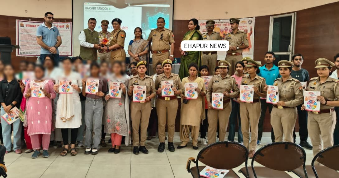 हापुड़, सीमन (ehapurnews.com): मिशन शक्ति अभियान फेज 5.0 के तहत थाना हापुड़ नगर क्षेत्रांतर्गत एसएसवी डिग्री कॉलेज में रविवार को कार्यशाला आयोजित कर प्रसिद्ध साइबर विशेषज्ञ रक्षित टंडन द्वारा पुलिस अधिकारियों के साथ साइबर अपराधों (डिजिटल अरेस्ट, इन्वेस्टमेंट स्कीम, सोशल मीडिया फ्रॉड व एपीके फाईल आदि) से बचाव एवं छात्राओं/बालिकाओं को उनके अधिकारों, विभिन्न हेल्पलाइन नंबरों व कल्याणकारी योजनाओं आदि की जानकारी देकर जागरूक किया गया। इस दौरान पिलखुवा क्षेत्राधिकारी अनीता चौहान, हापुड़ कोतवाली प्रभारी निरीक्षक देवेंद्र सिंह बिष्ट आदि उपस्थित रहे।