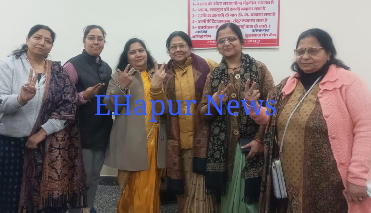 हापुड, सीमन/सुरेश जैन (Ehapurnews.com): दिगम्बर महिला जैन समाज के चुनाव सन्त भवन, जैन लोक पर सम्पन्न हुए। चुनाव अधिकारी सुदेश जैन ने बताया कि रेणुका जैन अध्यक्ष, चारू जैन उपाध्यक्ष, मधु जैन महामंत्री, नेहा जैन कोषाध्यक्ष तथा सोनू जैन मंत्री निर्वाचित हुए। सभी ने नवनिर्वाचित पदाधिकारियो को बधाई दी। नवनिर्वाचित टीम ने जैन धर्म की प्रभावना को बढाने के लिए पूरी निष्ठा और लगन से कार्य करने का आश्वासन दिया।