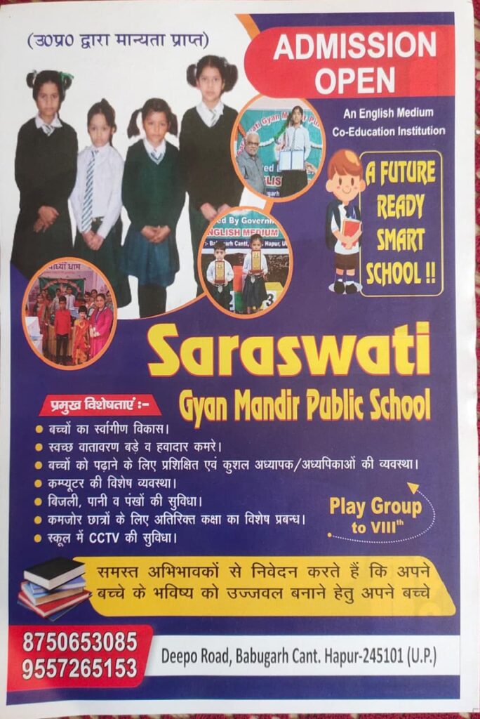 सरस्वती ज्ञान मंदिर पब्लिक स्कूल में एडमिशन शुरु : 8750653085, 8859886387