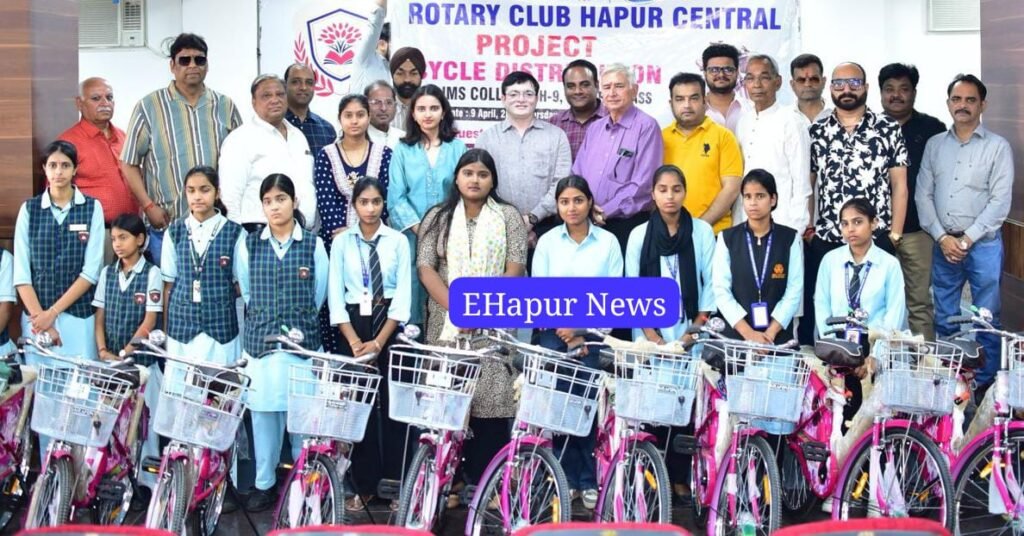 हापुड़,सीमन/संजय कश्यप (ehapurnews.com):रोटरी क्लब हापुड़ सेंट्रल ने जेएमएस वर्ल्ड स्कूल के प्रांगण में आयोजित एक समारोह में छात्राओं को साइकिल वितरित की। इस प्रकल्प का मुख्य उद्देश्य बेटी बचाओ, बेटी पढ़ाओ अभियान को सार्थक करते हुए यह सुनिश्चित करना है कि कोई भी मेधावी छात्रा संसाधनों के अभाव में शिक्षा से वंचित न रहे।