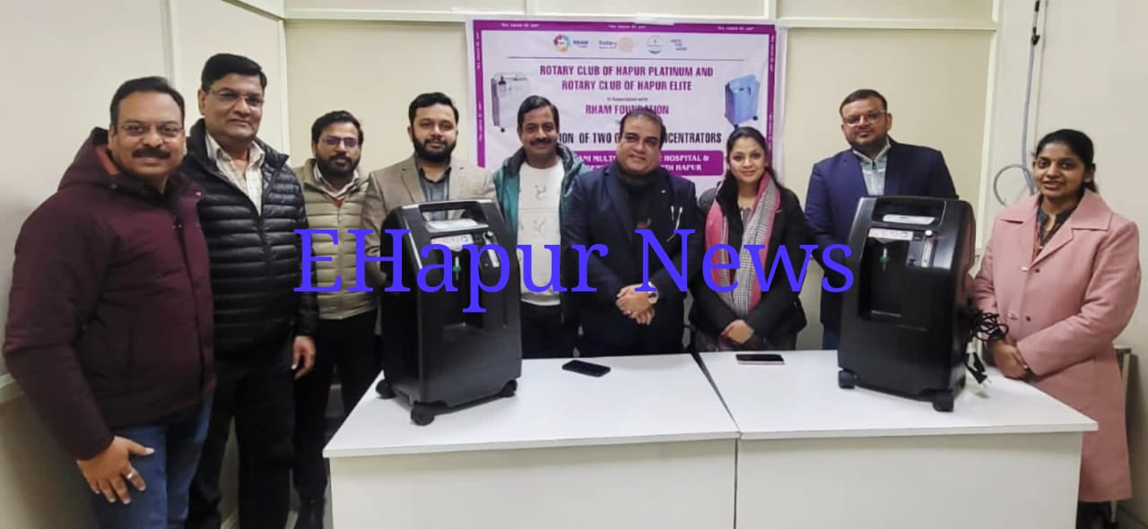 हापुड, सीमन (ehapurnews.com): रोटरी क्लब हापुड़ प्लैटिनम एवं रोटरी क्लब हापुड़ इलीट ने गुरुवार को दो औक्सीजन कन्सन्ट्रेटर, संजीवनी हॉस्पिटल एवं ट्रौमा सेन्टर,नई मंडी,हापुड़ को दिये।